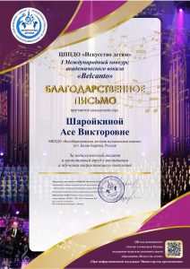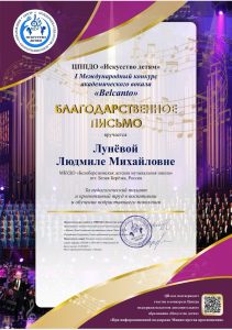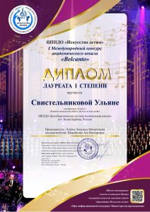 ПОЗДРАВЛЯЕМ СВИСТЕЛЬНИКОВУ УЛЬЯНУ, которая стала ЛАУРЕАТОМ l степени в I Международном конкурсе академического вокала «Belcanto». Номинация: Солист