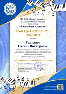 ПОЗДРАВЛЯЕМ ВЛАСОВУ ПОЛИНУ , которая стала ЛАУРЕАТОМ l степени в l Международном конкурсе пианистов «Волшебные клавиши »