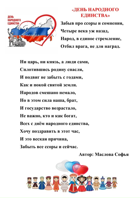 В этот светлый день, когда сердца россиян бьются в унисон, Свистельникова Ульяна, в душевном созвучии с преподавателем Людмилой Михайловной Лунёвой, шлёт искренние поздравления с Днём народного единства!